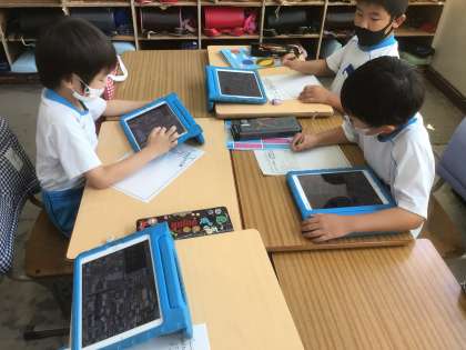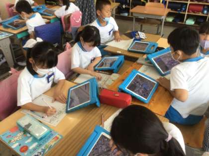 グループ学習です。自分の見つけたことや、確認できたことを伝え合っています。