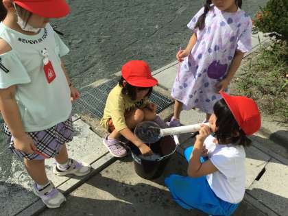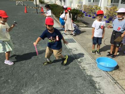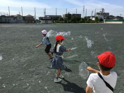 たくさんのしゃぼん玉を作ったり、大きなしゃぼん玉に挑戦したりする子もいました。