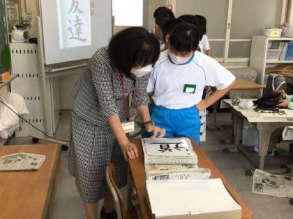 机の上に置いて提出するだけでなく、一人一人がこの時間に努力した点を振り返り、伝えています。