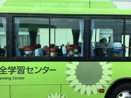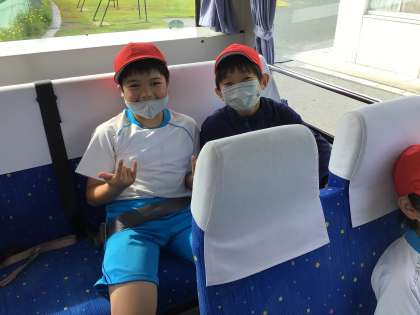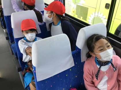 今日は2組と4組です。4組のバスが先に出発しました。