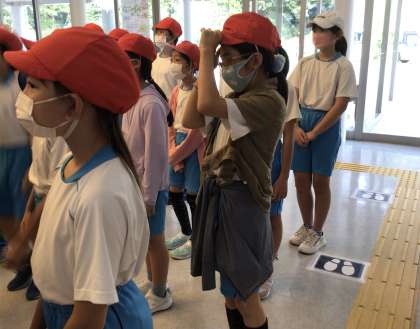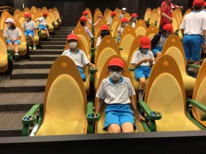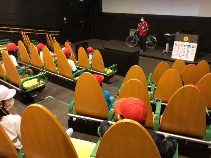 豊田市交通安全学習センターに到着しました。最初、2組はシアターで安全講習、4組は自転車に乗って安全講習を受講しました。