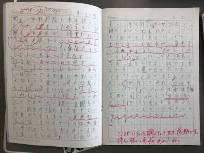 学校で学んだ詩の意味について家でさらに調べて、自主学習ノートにまとめてきた子がいました。