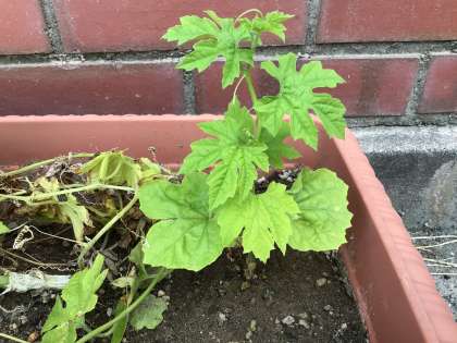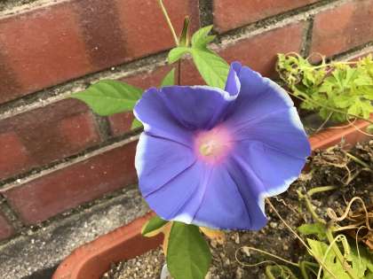 今朝の様子です。プランターのアサガオの花が咲いていました。また、プランターのツルレイシも成長しています。3枚目の写真は、朝の会です。今日の日直さんが1分間スピーチをしているところです。