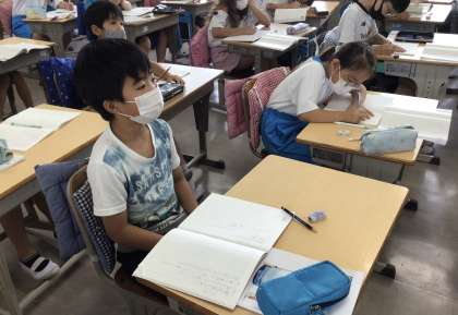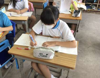 4組の授業の様子です。「ふしぎ」という詩の意味を考えていました。