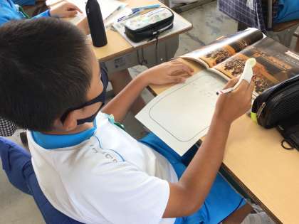 鑑賞の授業です。曲を聴いて、感じたことを紹介カードにしています。