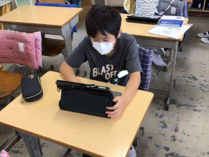 朝学の時間に学校でもキュビナに取り組んでいます。