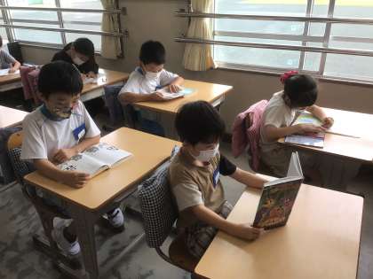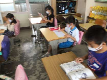 給食を食べ終わり、自分の時間を有意義に過ごしています。