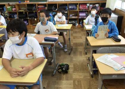 2組の読み聞かせの様子です。読書が好きな子が多くて真剣な表情で聞いていました。