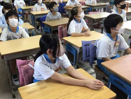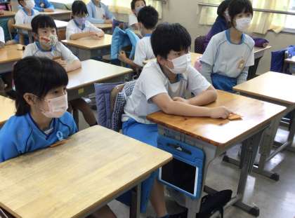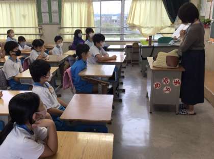 4組の読み聞かせの様子です。落ち着いた雰囲気で静かに聞いていました。