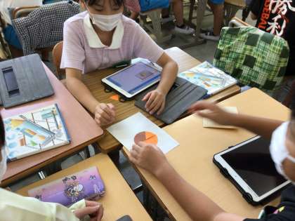 操作活動と話し合いを通して、2分の1のピザと合わせたら1つのピザになるパターンを探しました。
