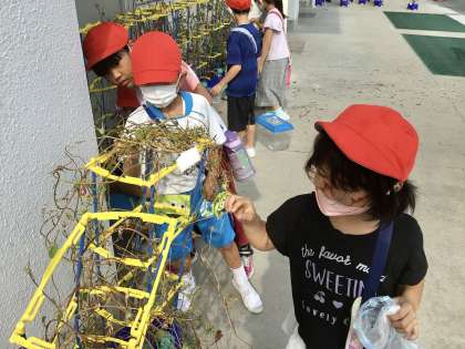 「おおきいたねがあったよ」「ちゃいろとくろがあったよ」と色々なことに気づきながら種をとっていく子どもたちでした。