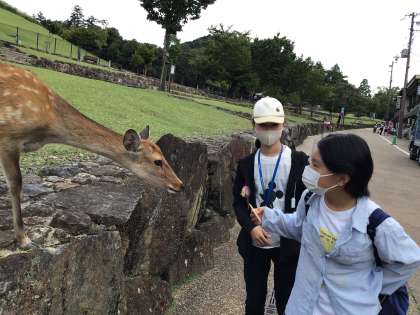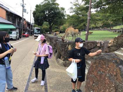 奈良公園の班別行動が始まりました。