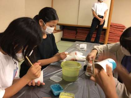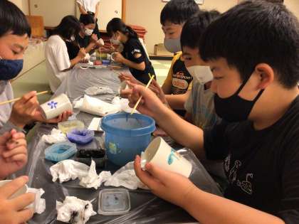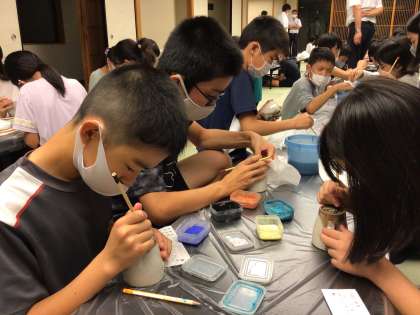 清水焼(湯呑みとマグカップ)の絵付け体験です。