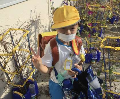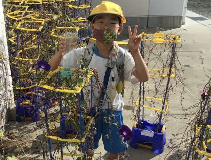 この日は天気もよくアサガオに水やりをしていました。