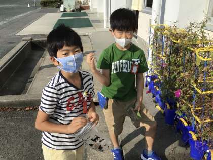 収穫したアサガオの種を見せてくれました。