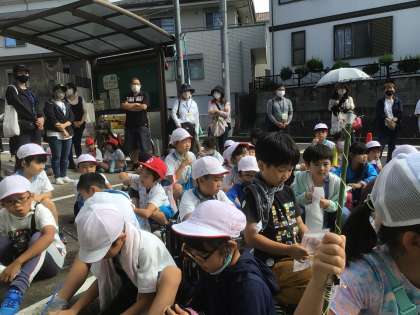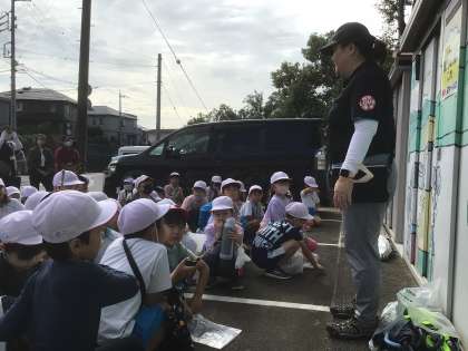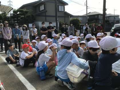 伊保原区民会館に、到着です。ゆい先生のお話を聞いて、下へおりて行きました。