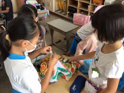「家に風呂敷があったよ!」と持ってきてくれた児童の風呂敷を使って