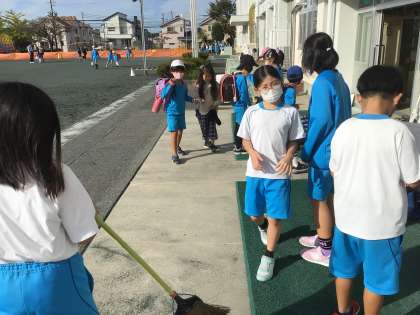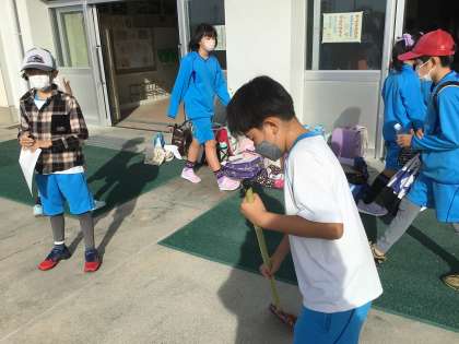 今朝の様子です。後期も挨拶や掃除を行っています。