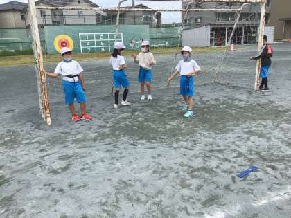 今日は、運動場で学級レクリエーションをしました。タグを身に付けたケイドロを楽しみました。