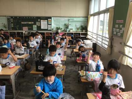 今日は、お弁当の日でした。朝から、お弁当の入ったバッグを大事そうに持っていましたよ。お昼に近づくにつれ、お弁当の話題が絶えませんでした。ご協力、ありがとうございました。