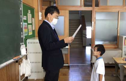 夏休みに書いた生活文の表彰がありました。
