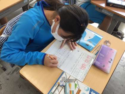 今年度5年生は、学年統一で、一週間分の自主学習の計画を、週のはじめに自分でしています。ドリルを進めるべき範囲や取り組むべき宿題を確認し、キュビナや自主学習ノート付け加えながら計画。担任のチェックを受け、宿題として自主学習を行っています。週の最後には一週間を振り返り、自分の計画や宿題の取り組み方についての反省をしています。後期に入り、よく考えて計画する子の姿が、4月以上に増えてきました。