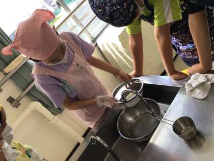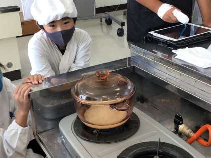 ガラス鍋の中の米の変化に驚く子が多くいました。