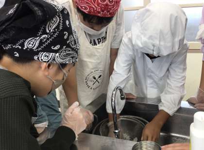 4組の調理実習の様子です。
