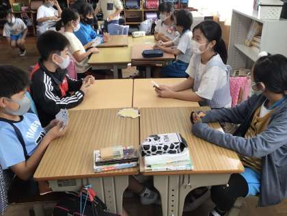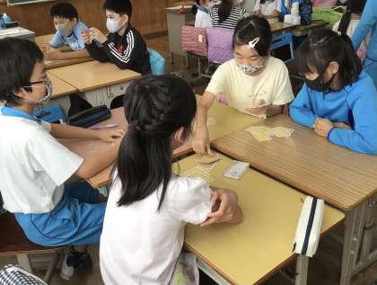 学級レクリエーションを行いました。コミュニケーションツールのトランプカードを使って仲良く過ごしました。さらに仲の良さが高まりました。