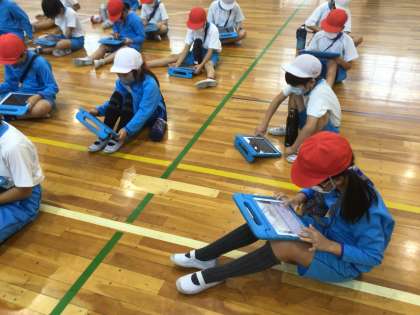 授業の終わりには、学習用タブレットで振り返りをしていました。