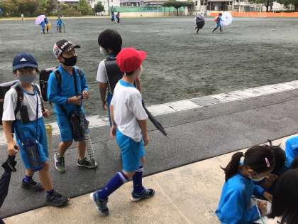 今朝の様子です。小雨が降る中、元気よく挨拶をしていました。