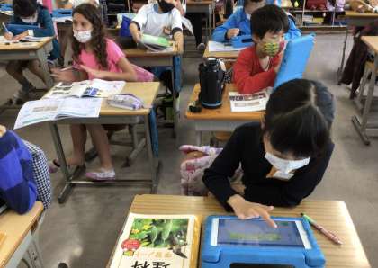 4組の理科の授業です。水蒸気は、空気中のどこにでも含まれているのかという問題を調べていました。