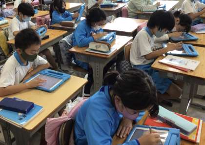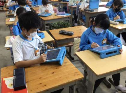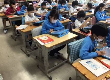3組の国語の授業です。学習用タブレットを使って新出漢字の練習をしていました。