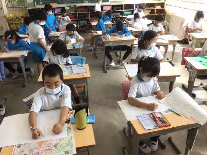 読書感想画書いています。 どんな絵にしようかな〜