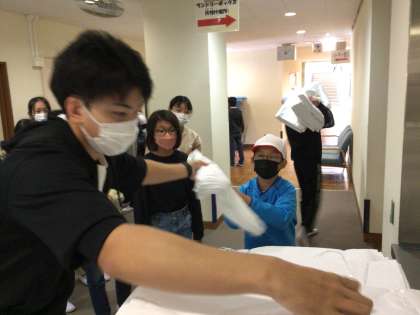 シーツを受け取り