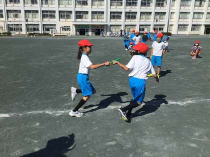 1組と4組は、抜きつ抜かれつのリレーで大いに盛り上がっていました。