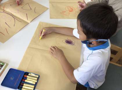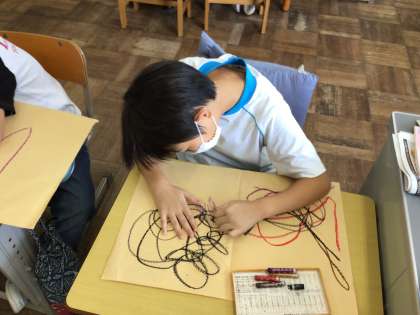 さつまいもの収穫を思い出しながら、紙にさつまいもの模様を描きました。