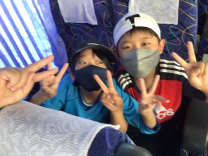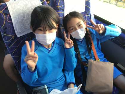 今、バスに乗って、浄水小学校へ向かっています。