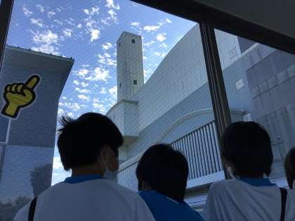3組&2組10人のチームは、午後、エコットのインタープリターさんに案内してもらい、渡刈クリーンセンター内の見学をしました。ごみ処理の際に発生する熱を利用して発電し、センター内で利用したり売電したりすること、煙突は3つあるけれど煙が出ないようにしていることを知りました。環境に配慮した施設だと改めて知ることができました。