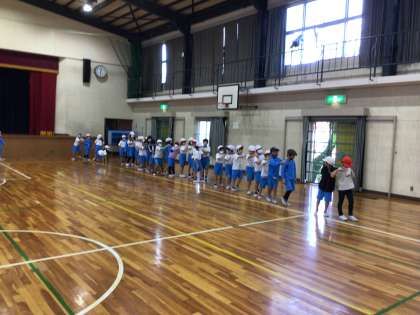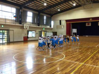 お楽しみタイムにジャンケン列車をしました。1番先頭になれた児童はとても誇らしげでした。