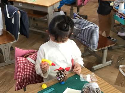 松ぼっくりでクリスマスツリーを作ったりしました。