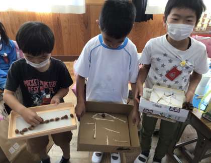 どんぐりでやじろべえやどんぐり迷路を作ったり