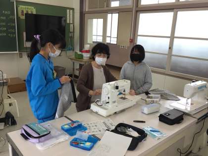 ナップサック作りの様子です。今日で完成を目指します。