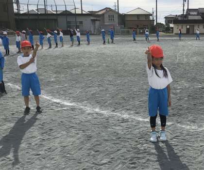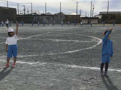 今日のスポーツフェスタ練習です。入場から退場までの流れを確認しました。