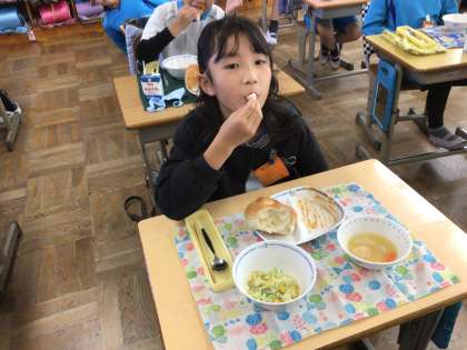 給食の準備や片付けが早くでき、給食委員の子から毎日二重丸をいただいています。