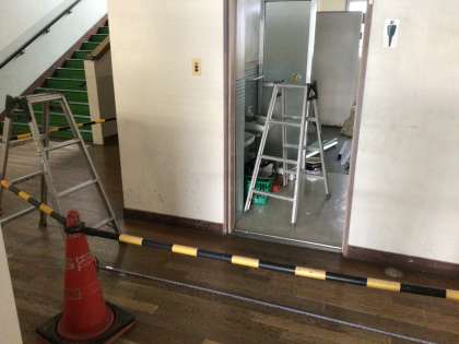 1階から4階の西トイレと体育館のトイレの改修工事が始まりました。