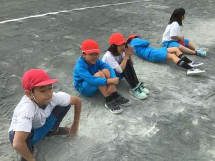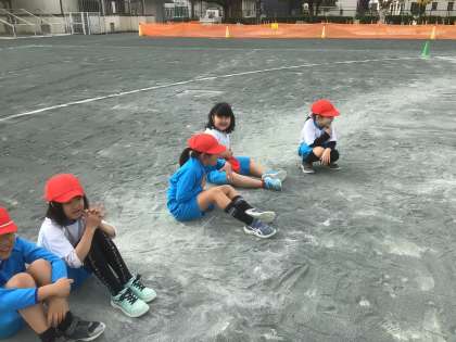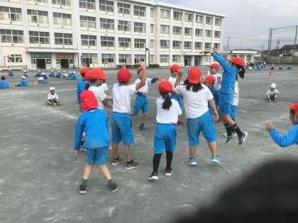 スポーツフェスタの練習を、頑張っています。もう、来週ですよ!とっても楽しそうに、友だちと伝え合っています。