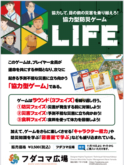 フダコマ広場の皆さんに来校していただき、防災型ゲーム「LIFE」を体験しました。