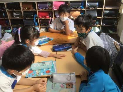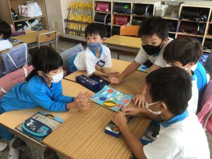 グループ活動で、自分の考えを伝えたり、友だちの考えを聞いたりしています。