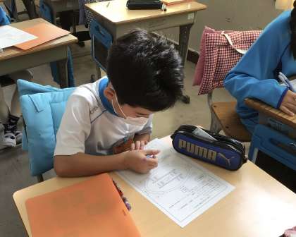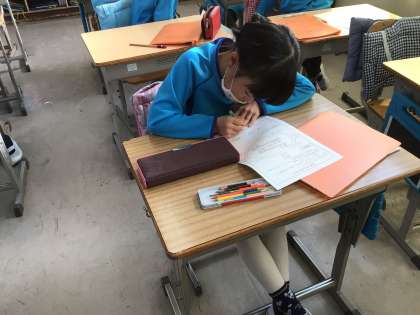 4組の朝の様子です。スポーツフェスタの学級対抗リレーで、自分の走る順番を書いていました。